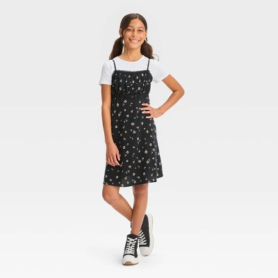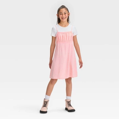 Keep their warm-weather closet super comfy and cool with this Lace Trim 2-for-1 Dress from art class™. This dress is designed to look like a tee under a jumper for a cute look, with lace trim along the neckline and waist. The stretchy material helps them stay comfy all day, and the pullover style allows for easy wear. Just have them pair it with their favorite shoes to complete the look