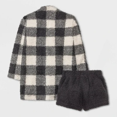 - 3pc pajama set includes a tank top, sleep shorts and long-sleeve coat
